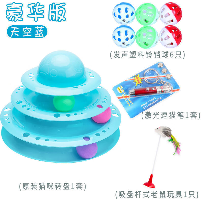 【精选】猫玩具猫转盘球三层逗猫棒宠物小猫幼猫咪用品猫咪玩具球宠物用品地狼 豪华版天空蓝