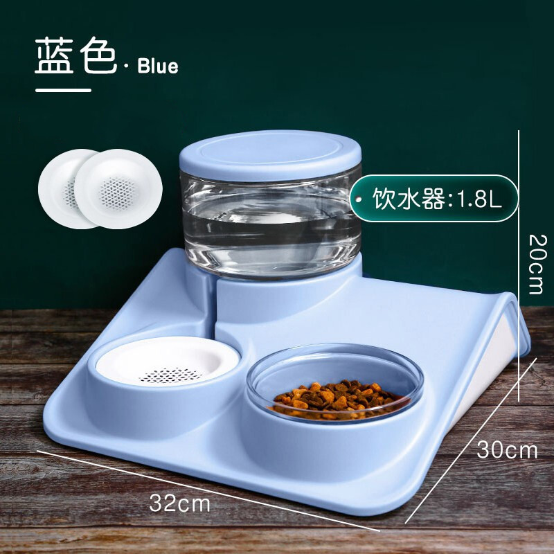 宠物饮水器狗狗喝水器不湿嘴流动不插电用猫咪喂水神器自动饮水机 【蓝色】喂食喂水双碗 2个配套滤芯