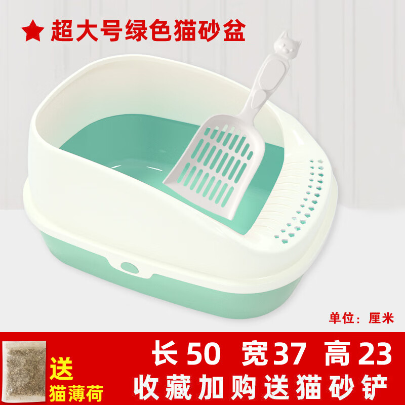 猫砂盆防外溅半封闭式猫厕所特大号超大猫沙盆防臭猫屎盆猫咪用品 【绿色超大号高围栏】收藏下单餸猫铲