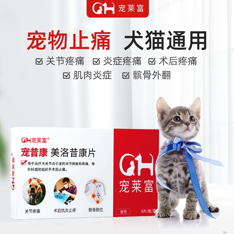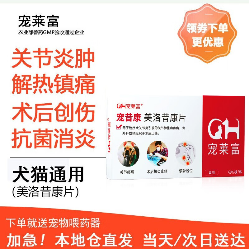 宠莱富宠昔康美洛昔康片宠物狗狗关节消炎止疼片老年犬抗炎止痛药猫咪绝育术后外伤伤口疼痛骨折 1gx6片/盒 喂药器