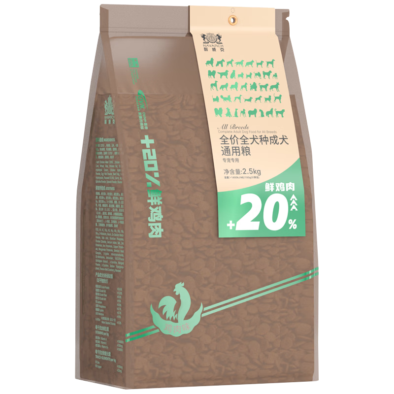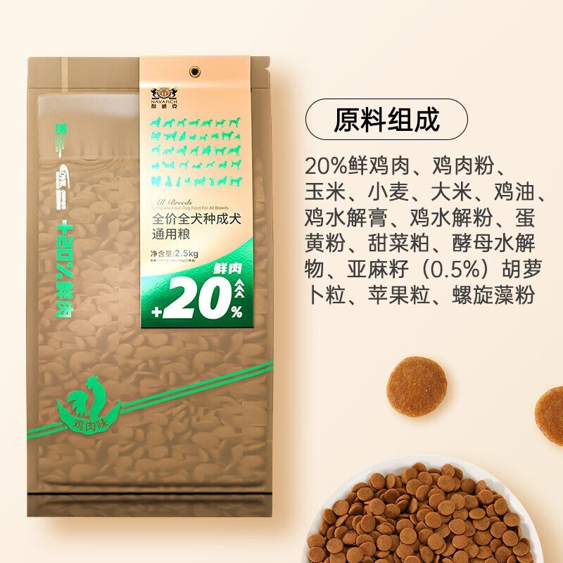 耐威克(Navarch)狗粮 泰迪金毛拉布拉多萨摩耶 全犬种全价鲜肉狗粮 2.5kg