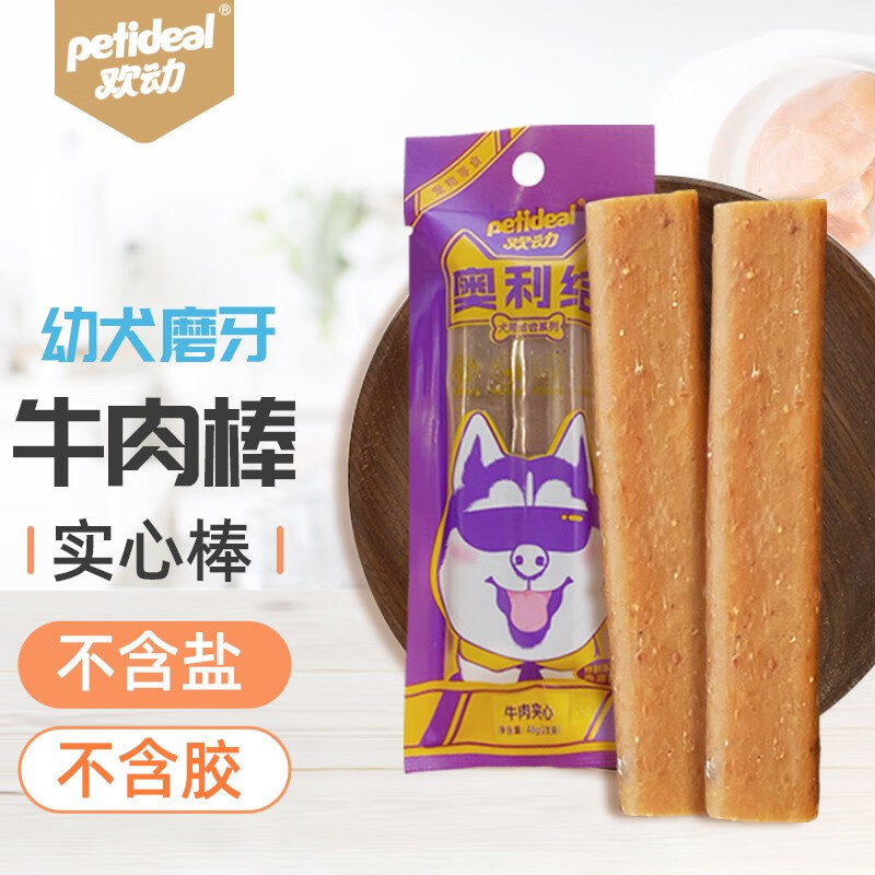 欢动狗零食 牛肉夹心狗狗磨牙棒 幼犬磨牙洁齿骨去口臭 柴犬柯基防拆家逗玩解闷零食 训犬奖励小包装 牛肉味 | 幼犬补钙磨牙48g*5(共10根)