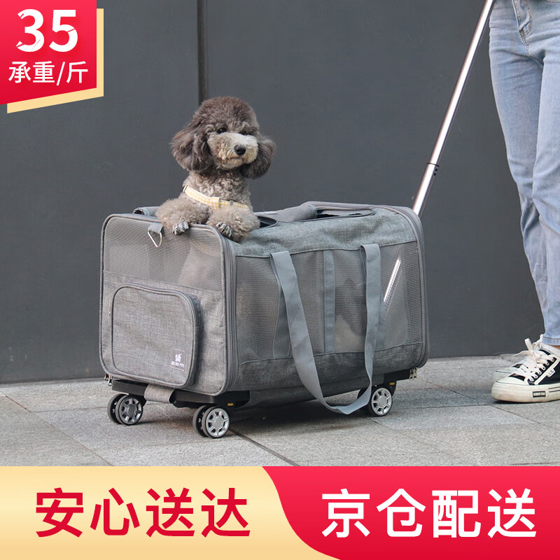 DO DO PET宠物拉杆箱包两厢可隔离航空箱 猫咪外出便携拉杆包出行手提猫包 深灰透气款-四面通风-拉杆可分离