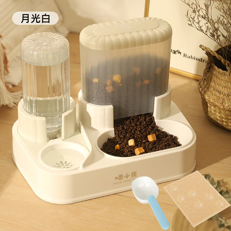 猫碗食盆双碗自动饮水喂食器一体狗狗猫咪喝水碗猫粮狗碗宠物用品 月光白【滤芯】 餐垫 勺子 猫狗通用加购收藏优先发货