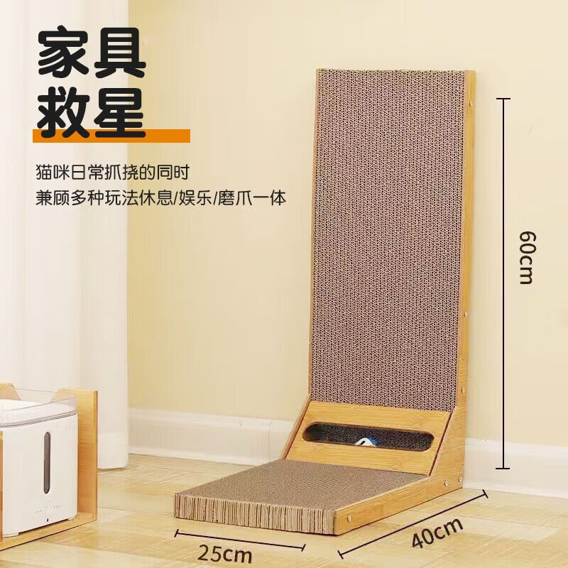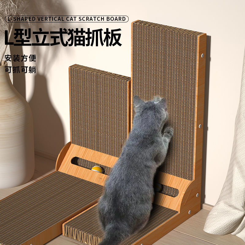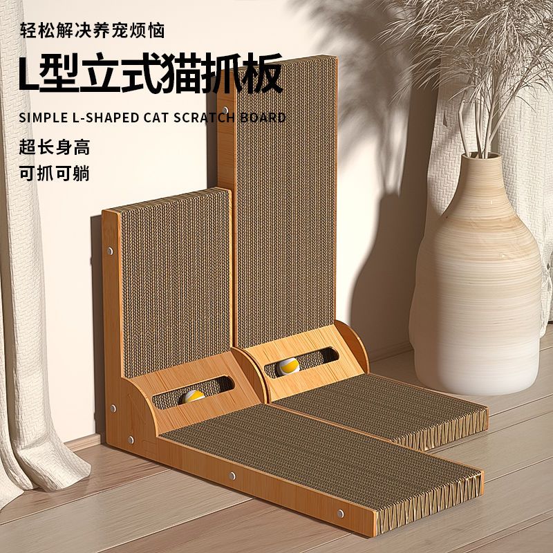 L型猫抓板立式耐磨不掉屑猫窝一体耐抓大号瓦楞纸猫爪板猫咪玩具 【工厂】L型超大号餸铃铛球