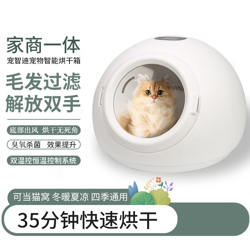 宠智迪宠物烘干箱猫咪狗狗洗澡烘干机家用智能恒温杀菌护毛吹水神器 升级款(负离子 臭氧 遥控 猫窝)