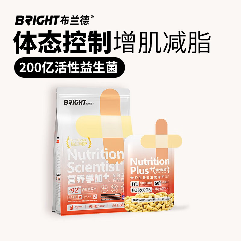 布兰德营养学加体态控制猫粮全价生骨肉高蛋白无谷主食冻干成幼老年猫粮 5kg猫粮 牛肉味