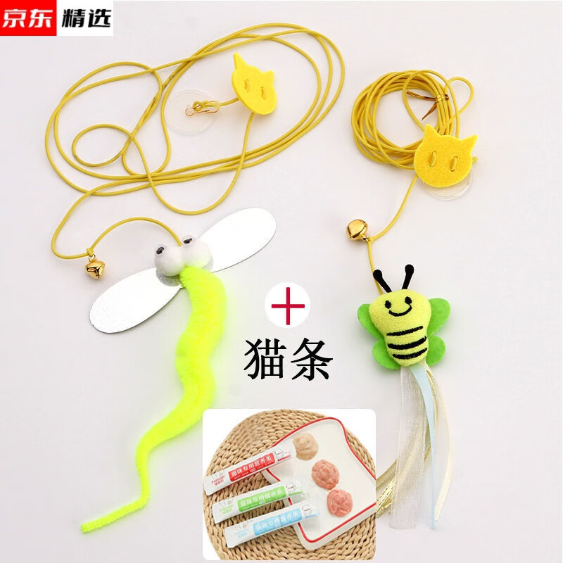 新型秋千逗猫玩具 网红家用挂门逗猫猫咪玩具悬挂式荡秋千无痕铃铛羽毛自嗨解闷神器 翅膀蜻蜓 小蜜蜂-有 5只猫条