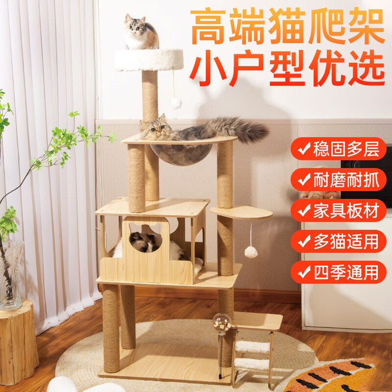 璐念邦可臣猫爬架小户型太空舱实木猫架猫窝猫树一体猫爬架子四季通用 [非主图款]见尺寸图双瞭望台