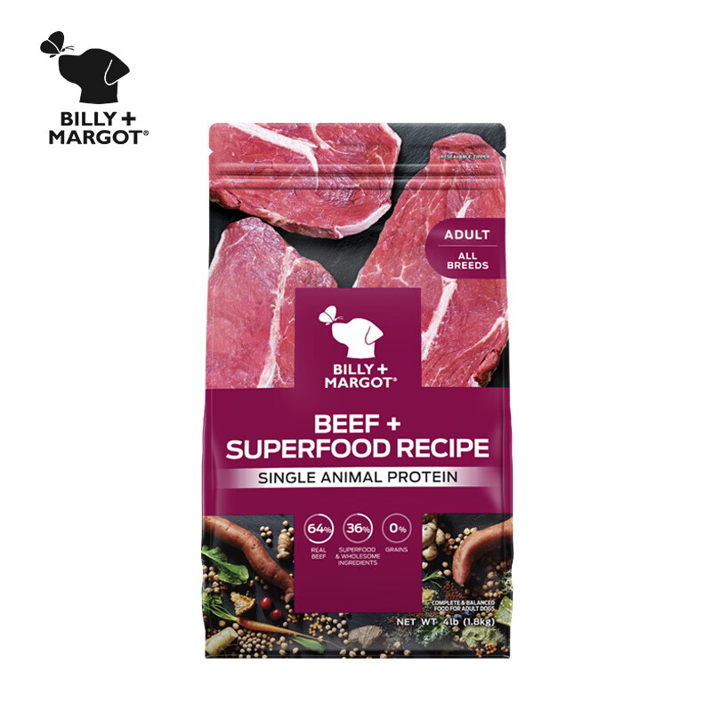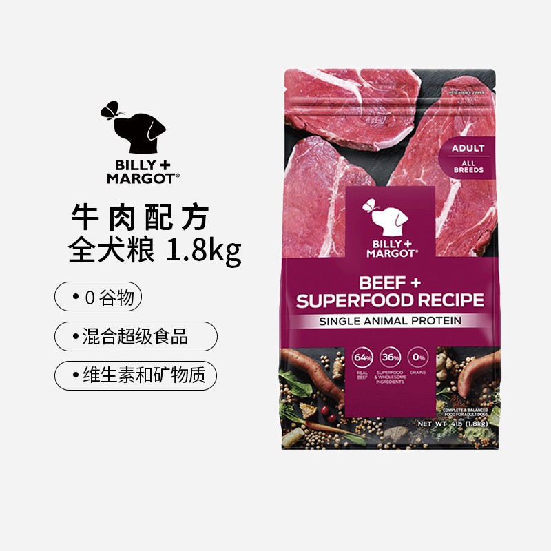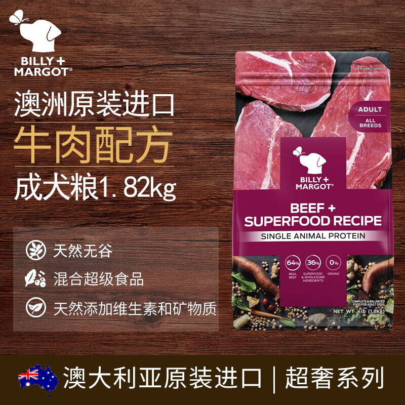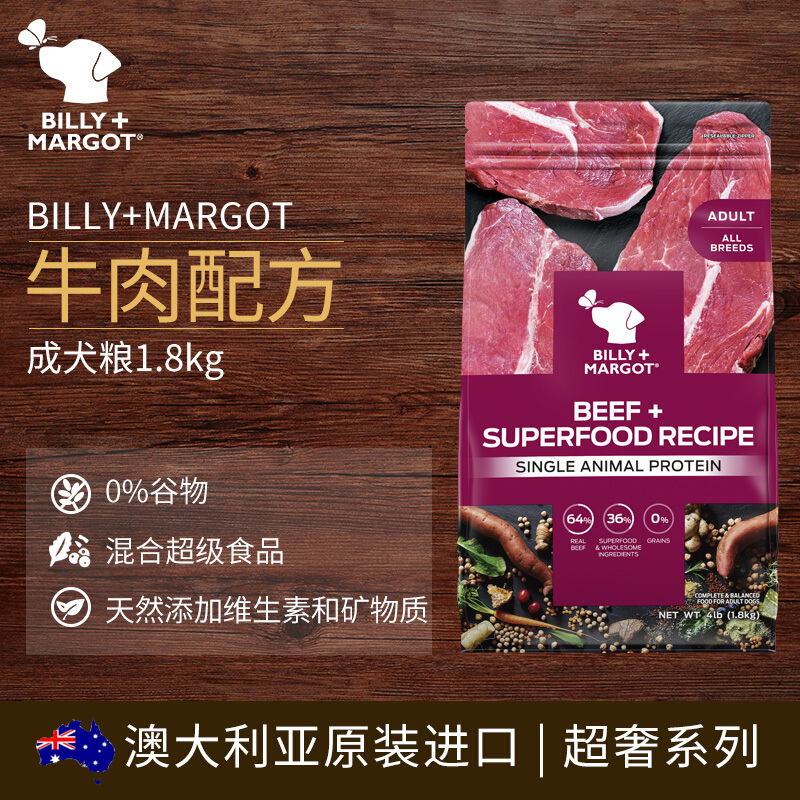 澳洲进口Billy Margot比利玛格狗粮成犬幼犬低脂天然无谷狗粮牛肉三文鱼袋鼠肉纯肉BM犬粮金毛 无谷牛肉配方 1.8kg(成犬)