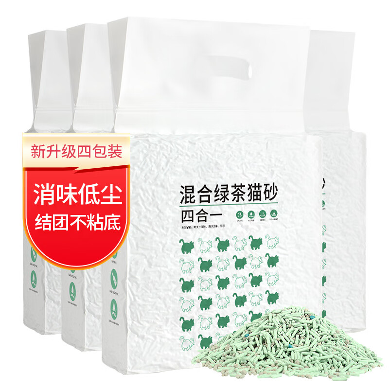 狮子医生 混合猫砂绿茶豆腐砂消味结团低尘不粘底猫沙猫咪用品 2.5kg*4