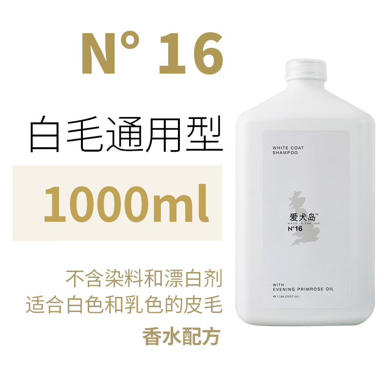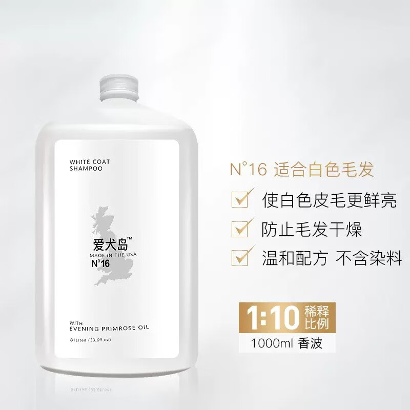 爱犬岛狗狗沐浴露美国进口香波大桶洗澡液 16号适合白色毛发犬 1000ml