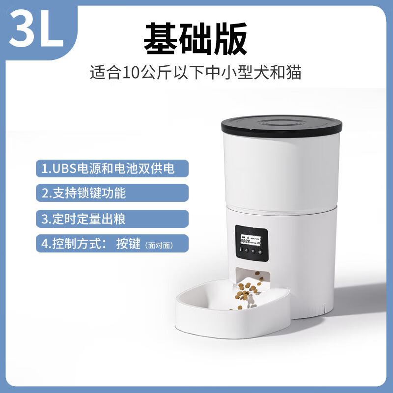 珊野宠物智能自动喂食器猫咪狗狗投喂器定时定量投食机3L小容量 3L按键版 喂食器【无钢碗】