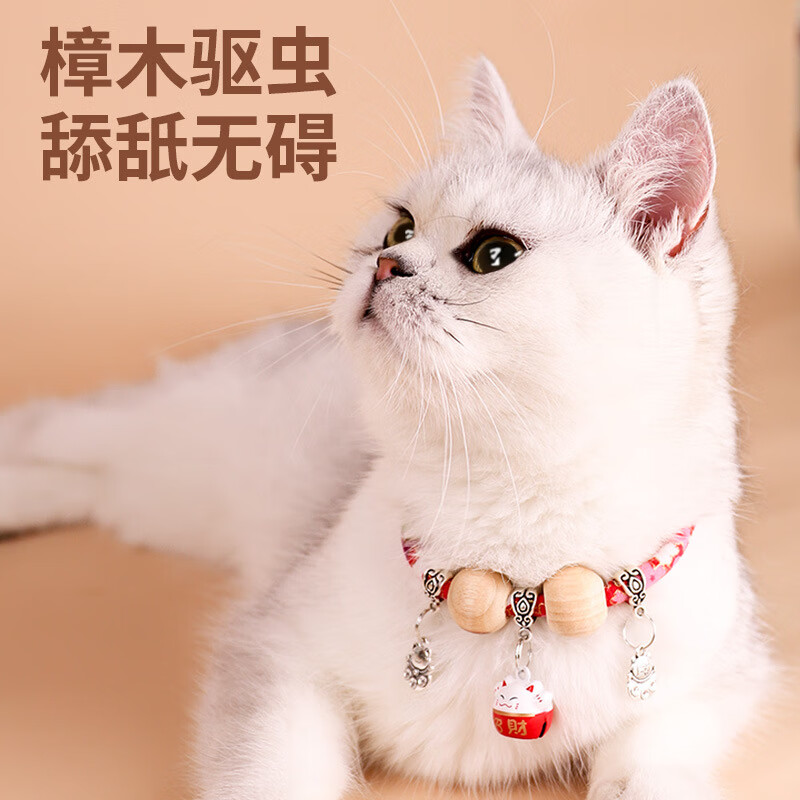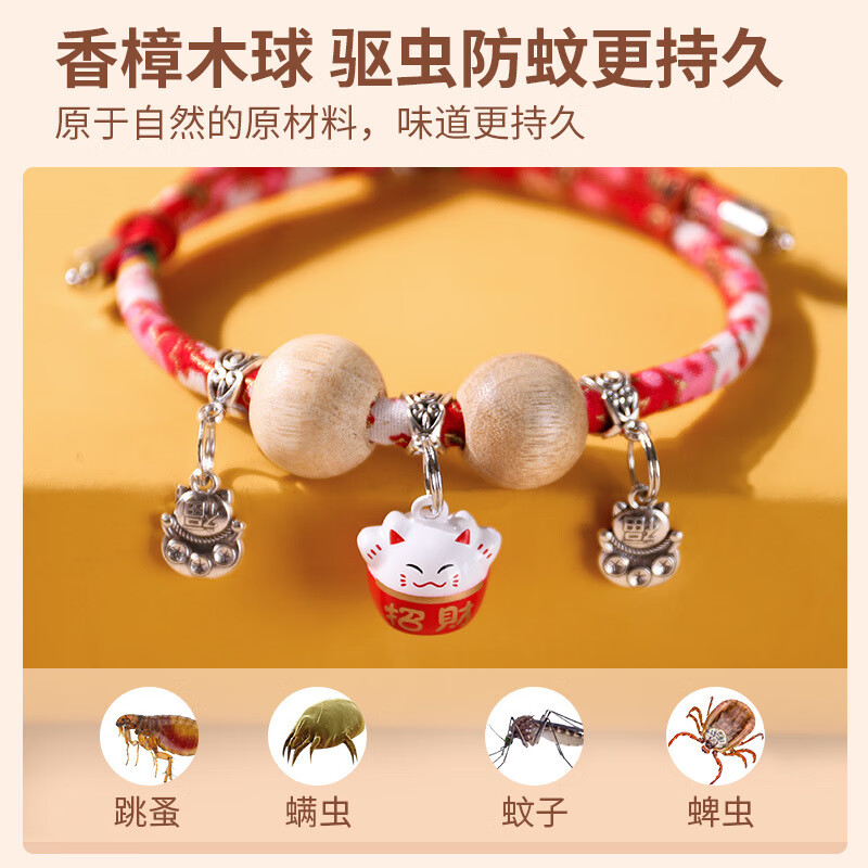 柒哦猫咪香樟木项圈狗狗脖圈猫圈防跳蚤防虱子螨虫驱蚊宠物除蚤颈圈 粉色 猫 香樟木项圈 XXS建议1-5斤猫犬