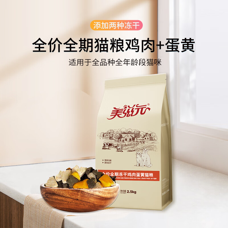美滋元全价全期冻干鸡肉蛋黄猫粮2.5kg 成幼猫全期粮增肥营养发腮 全期冻干鸡肉蛋黄猫粮 2500g