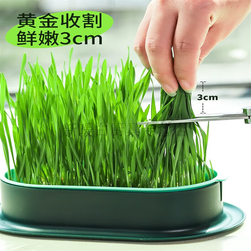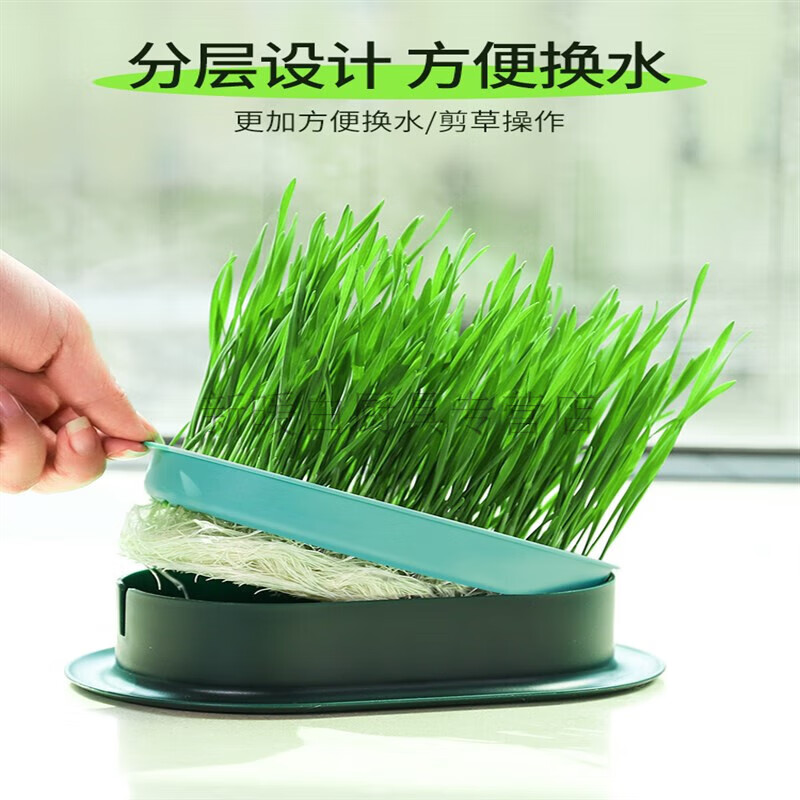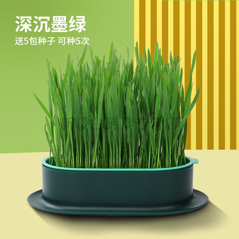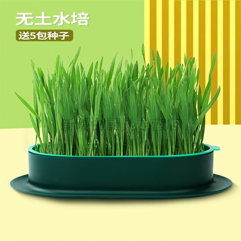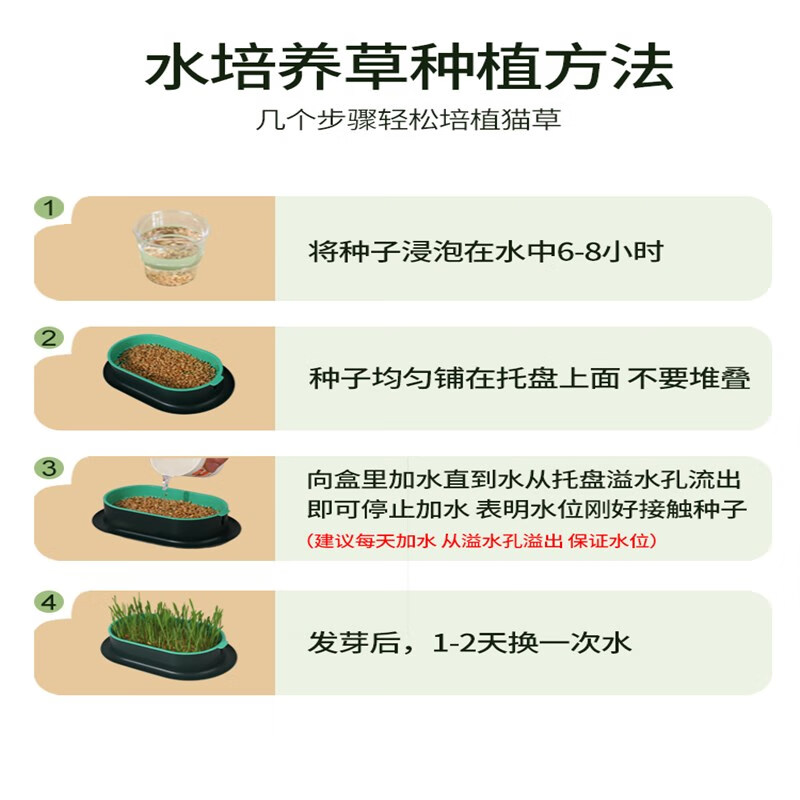 Orijen猫草盆栽小麦种子育苗盘无土水培化毛草猫薄荷懒人幼猫咪零食用品 无土水培-深沉墨绿【松5包种子 1盒