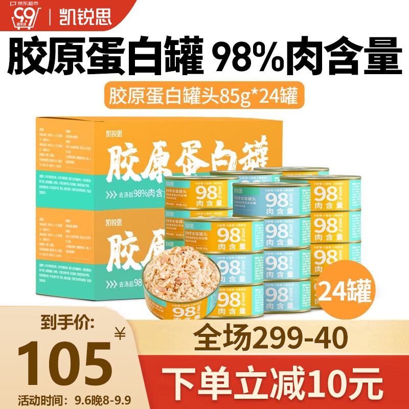 凯锐思鸡丝猫罐头湿粮浓汤补水银鱼磷虾宠物猫咪胶原蛋白猫零食汤罐 【胶原蛋白鸡丝罐】 85g*24罐