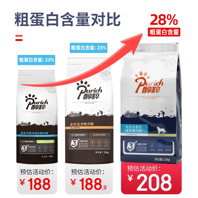 醇粹狗粮纯粹泰迪柯基老年犬大龄犬中小型狗狗主粮黑标通用型 大型成犬粮15kg