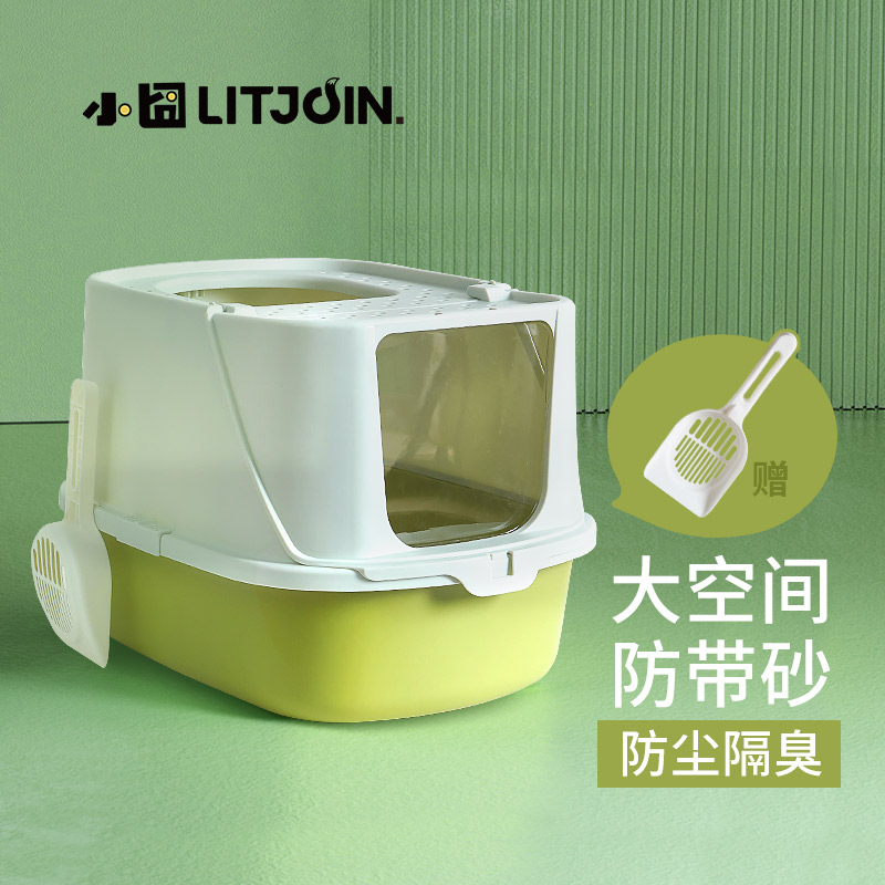 小囧 猫砂盆全封闭防外溅猫厕所猫屎盆猫沙盆猫便盆含猫砂铲猫咪用品 松霜绿-大号