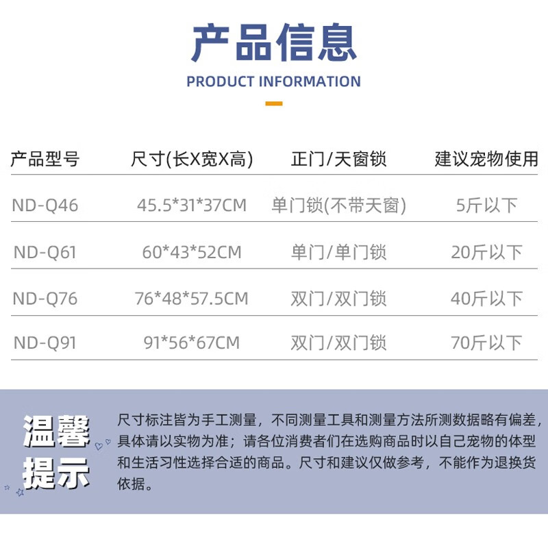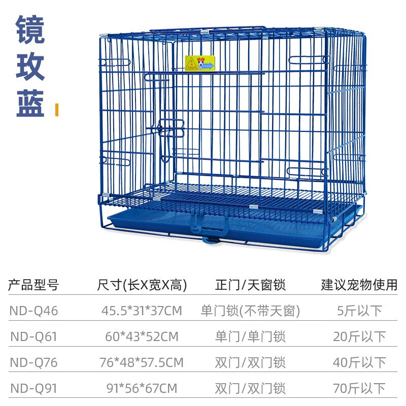 乐佳lejia狗笼 宠物笼加粗钢丝小中大型犬狗笼猫笼兔笼折叠天窗带托盘 纳米蓝2.5英尺35斤内