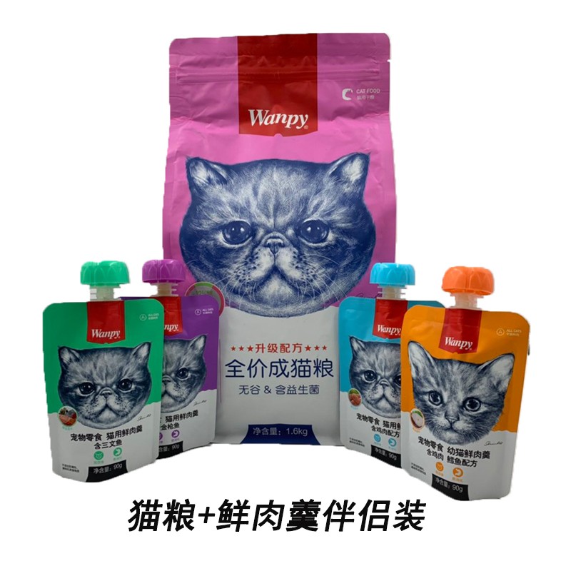 Wanpy顽皮鲜肉羹猫罐头零食猫咪妙鲜封包湿粮幼成猫营养增肥发腮 4包鲜肉羹 1.6kg猫粮 四个口味可选
