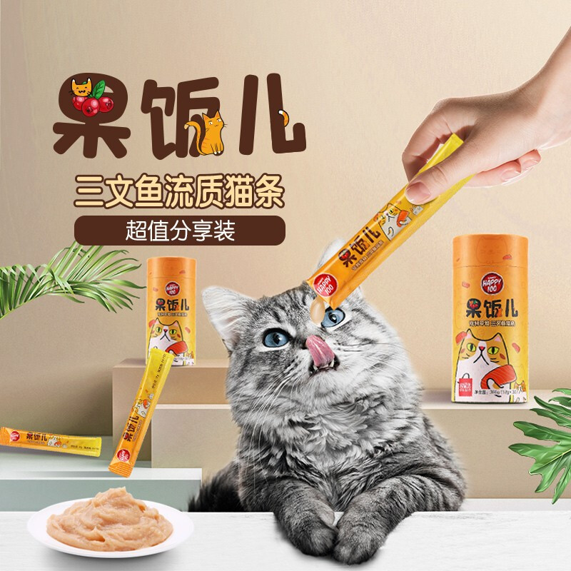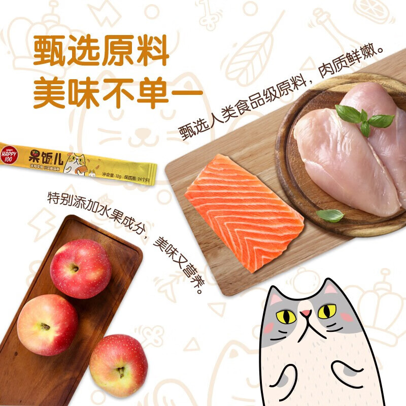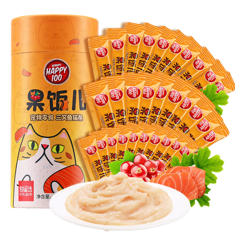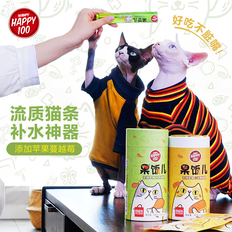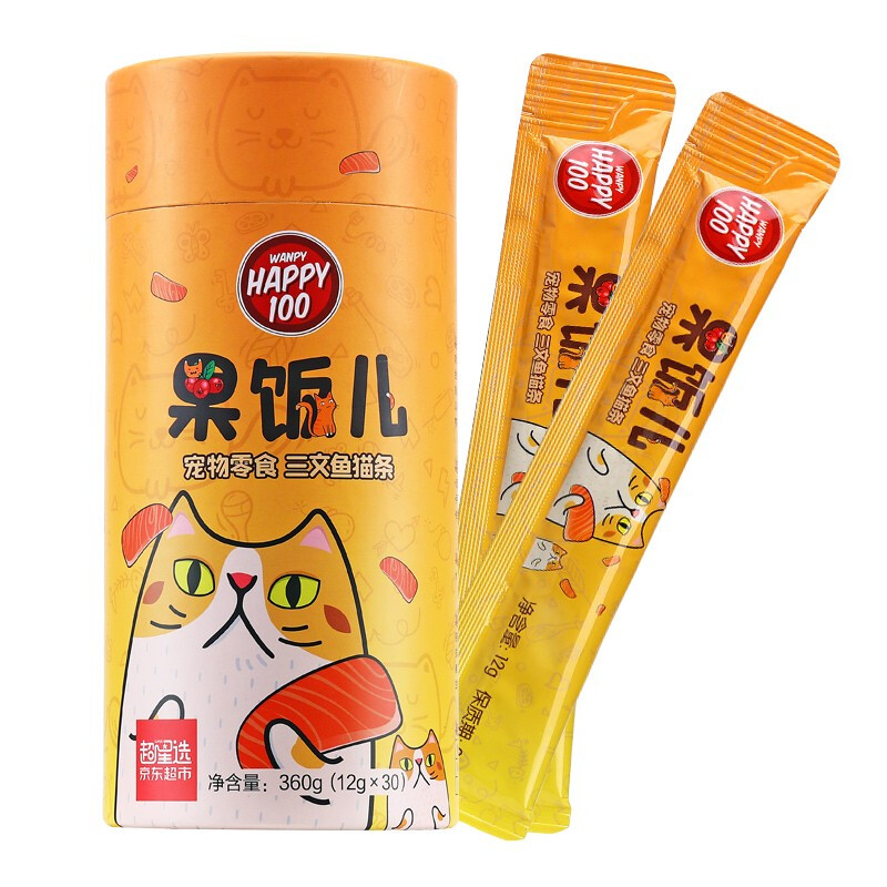 顽皮(wanpy)果饭儿happy100猫条噜吸吸猫咪湿粮拌饭逗猫神器猫咪零食欧一吸猫条 三文鱼味1罐360g【12g*30条】