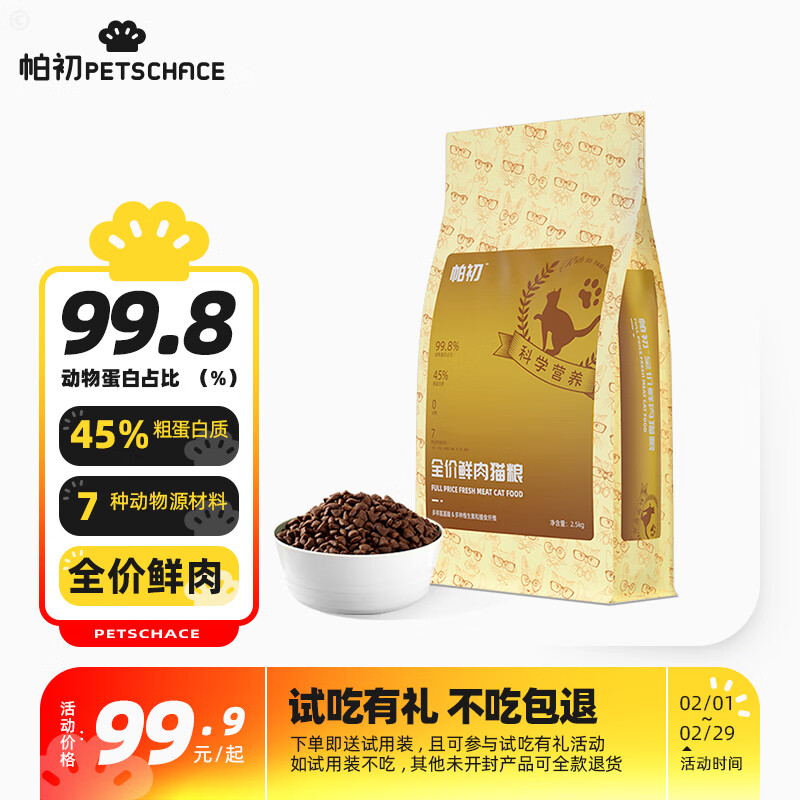 帕初猫粮丨无谷鲜肉粮猫主粮猫干粮幼猫成猫全阶段牛肉鸡肉鸭肉鱼肉味 【2.5KG】全价鲜肉猫粮