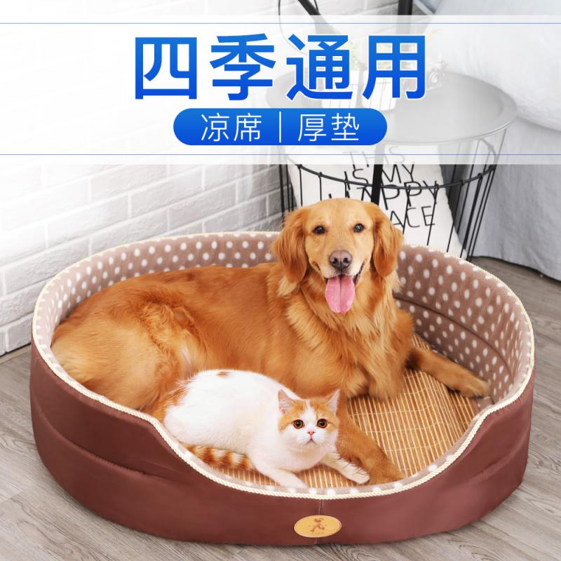 华元 猫狗窝春夏季宠物可拆洗泰迪小狗宠物网红博美柯基大型犬金毛拉布拉多四季通用凉窝凉席 驼色波点窝 XL-100cm(80斤内)