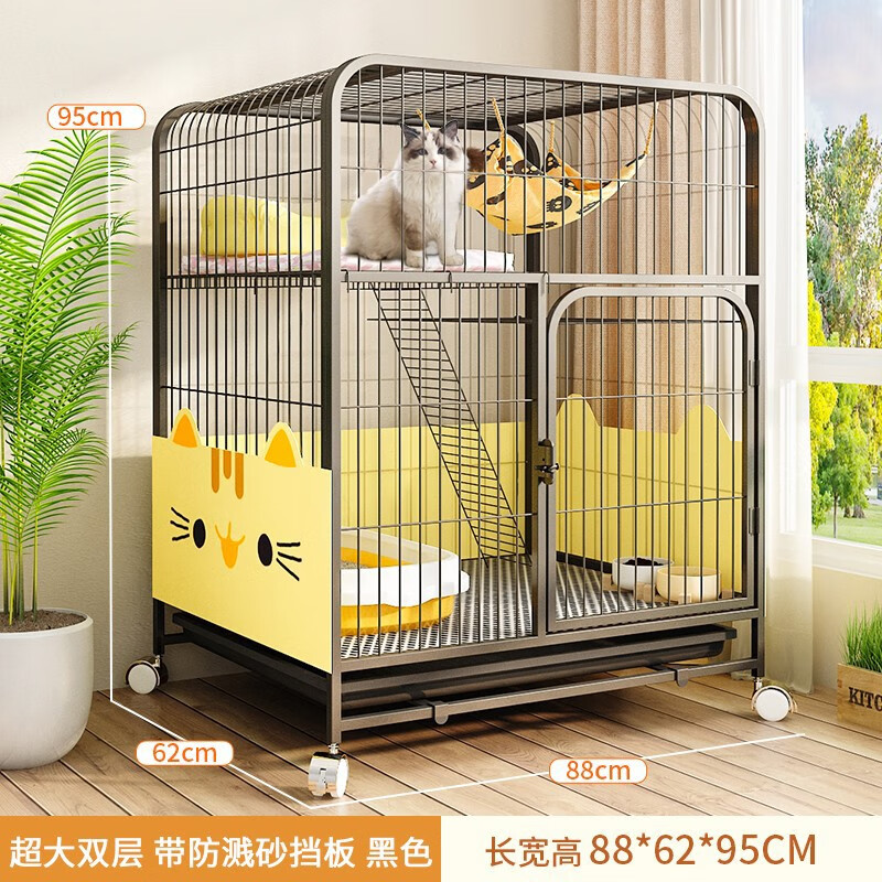 蔻丝猫笼子超大号家用猫窝别墅带厕所一体适合大猫室内防外溅猫舍猫笼 黑 超大双层【88_62_95】防溅砂 【新手款】猫砂盆 猫砂铲 玩乐款
