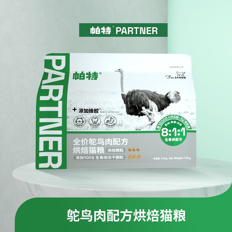 帕特低温烘焙猫粮冻干双拼成猫幼猫通用国产猫主粮 鸵鸟配方1.1kg