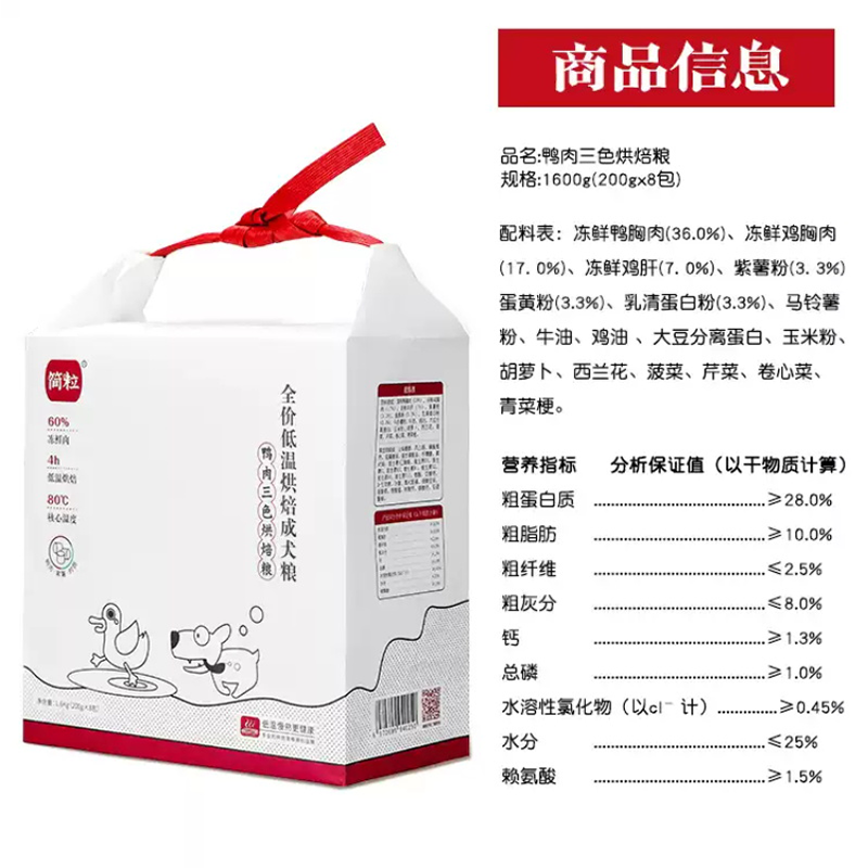 【现货立发】简粒三色烘焙粮成犬粮宠物狗粮小型中大型犬宠物犬主粮 鸭肉三色狗粮 1.6kg