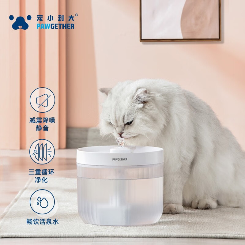 宠小到大智能宠物饮水机降噪自动循环流动活水猫咪饮水机喝水器过滤防干烧 经典白(2.3L适用中小型猫狗)