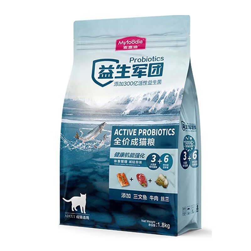 麦富迪猫粮益生菌团全价成猫幼猫孕猫奶糕粮1.8kg美毛去毛球调整肠胃 益生菌团全价成猫粮1.8kg