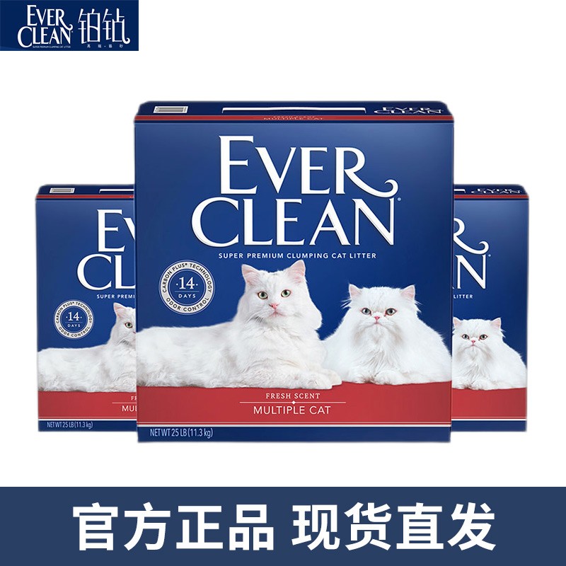 铂钻(EverClean)蓝标铂钻猫砂大礼包25磅*3包美国原装进口膨润土矿砂除臭低尘猫沙 红标75磅-发3箱