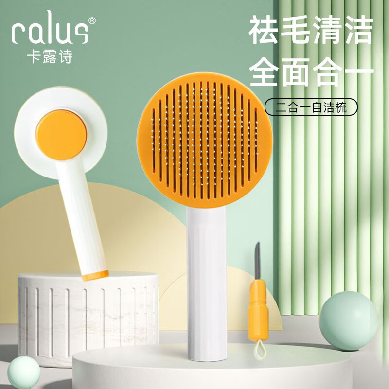 卡露诗狗狗梳子梳毛刷刮刀去浮毛猫毛清理器除毛一体针梳宠物用品猫梳子 小号自洁刷普通款