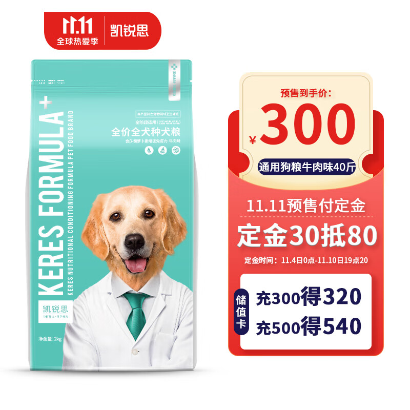 凯锐思 泰迪萨摩耶金毛拉布拉多比熊狗粮幼犬成犬通用牛肉味狗粮2kg*10袋(实发40斤)