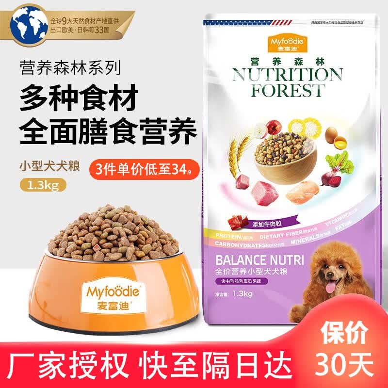 麦富迪(Myfoodie)狗粮 营养森林系列天然粮通用型全价犬主粮小型犬升级版成犬泰迪 小型犬全犬期2.6斤(添加牛肉粒)