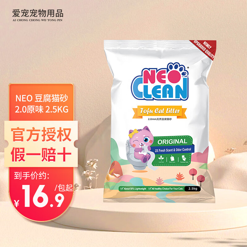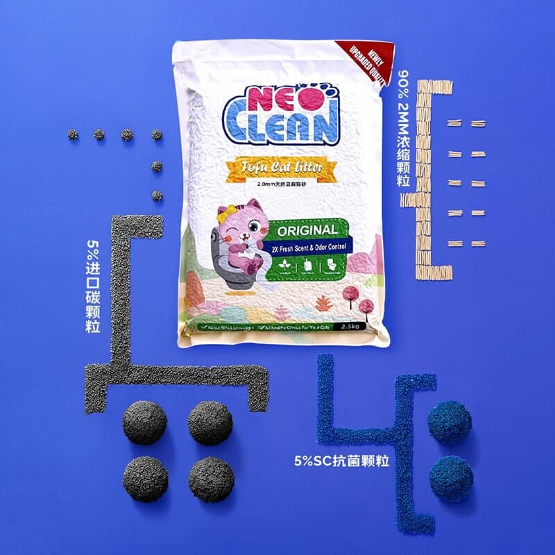 天净(NEO CLEAN)猫砂5斤 原味绿茶豆腐猫砂膨润土混合猫砂除臭无尘易结团可冲马桶 【2.0小颗粒】豆腐猫砂 2.5kg