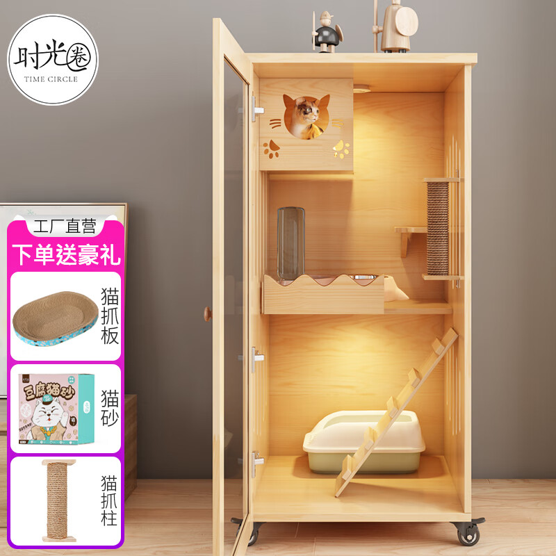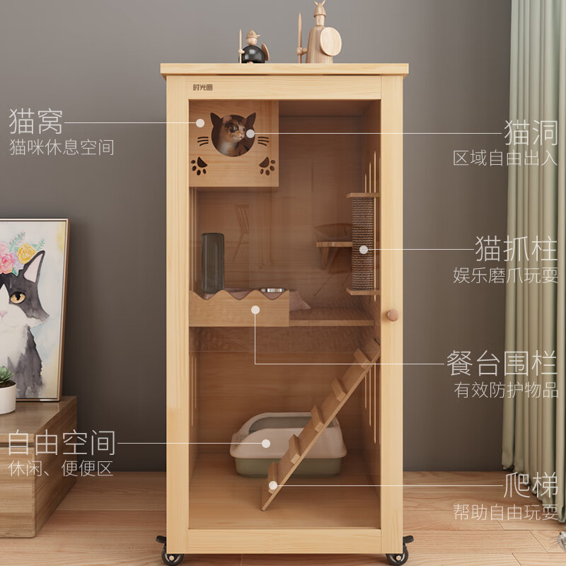 时光圈猫笼猫窝实木猫别墅猫笼子猫柜猫咪宠物房屋120*60*60 SM-G1266