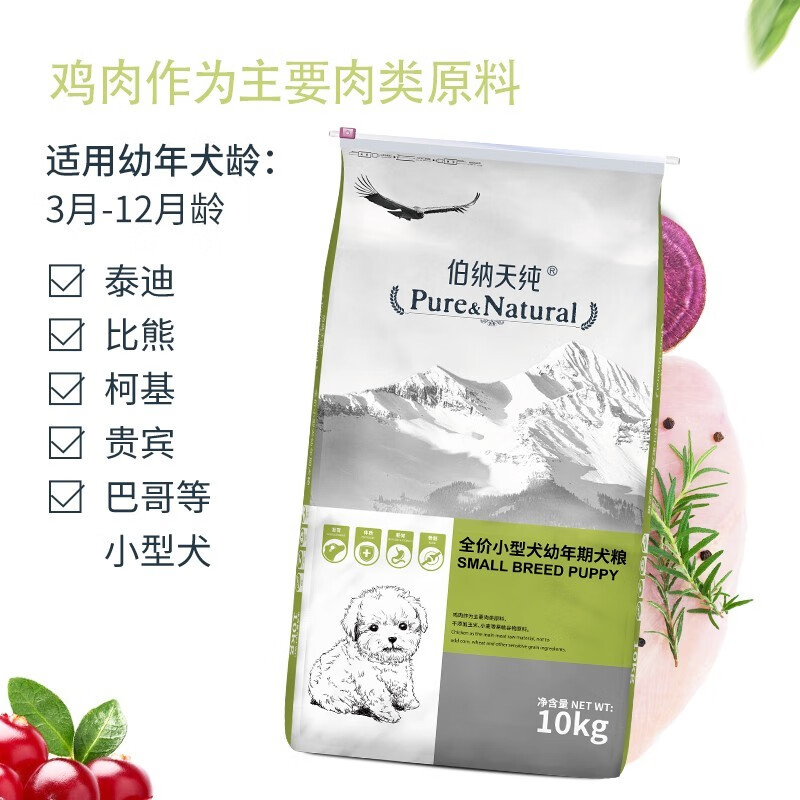 伯纳天纯宠物狗粮 小型犬幼犬泰迪贵宾粮法斗低敏天然犬粮口感升级 小型幼犬10kg