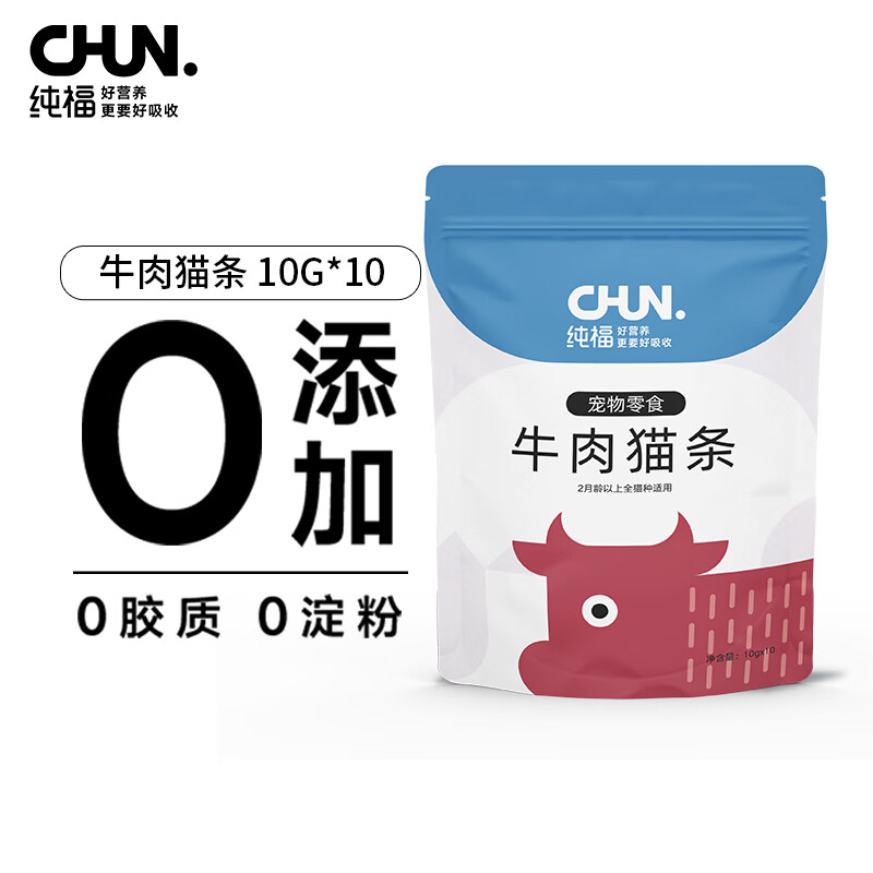 纯福(chunfu)猫咪零食营养湿粮幼猫成猫猫条牛肉味10g*10支