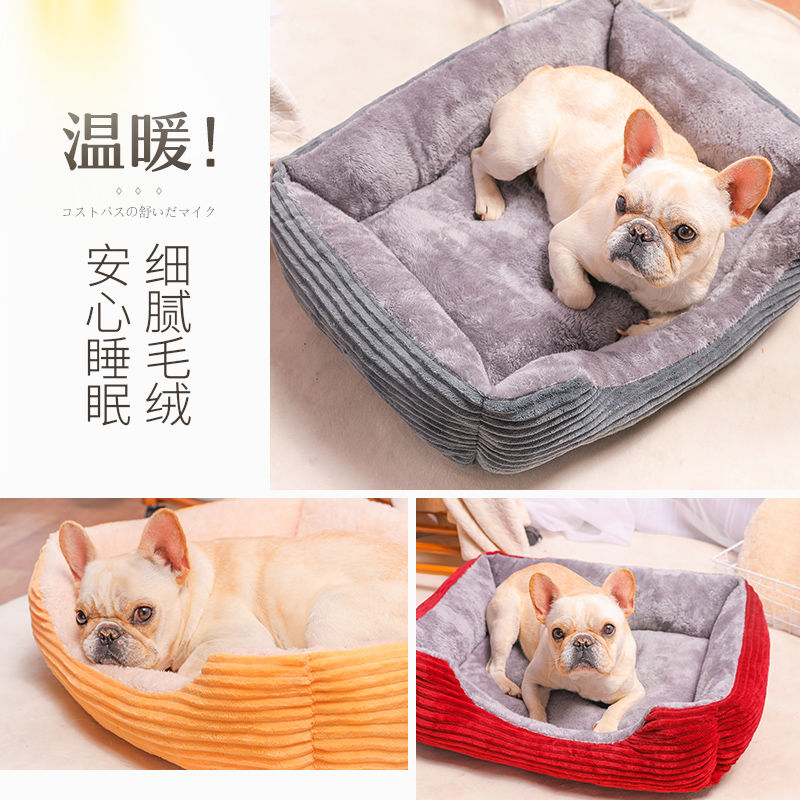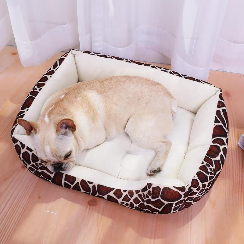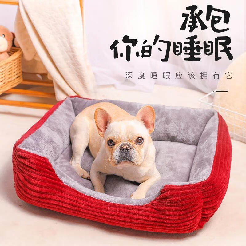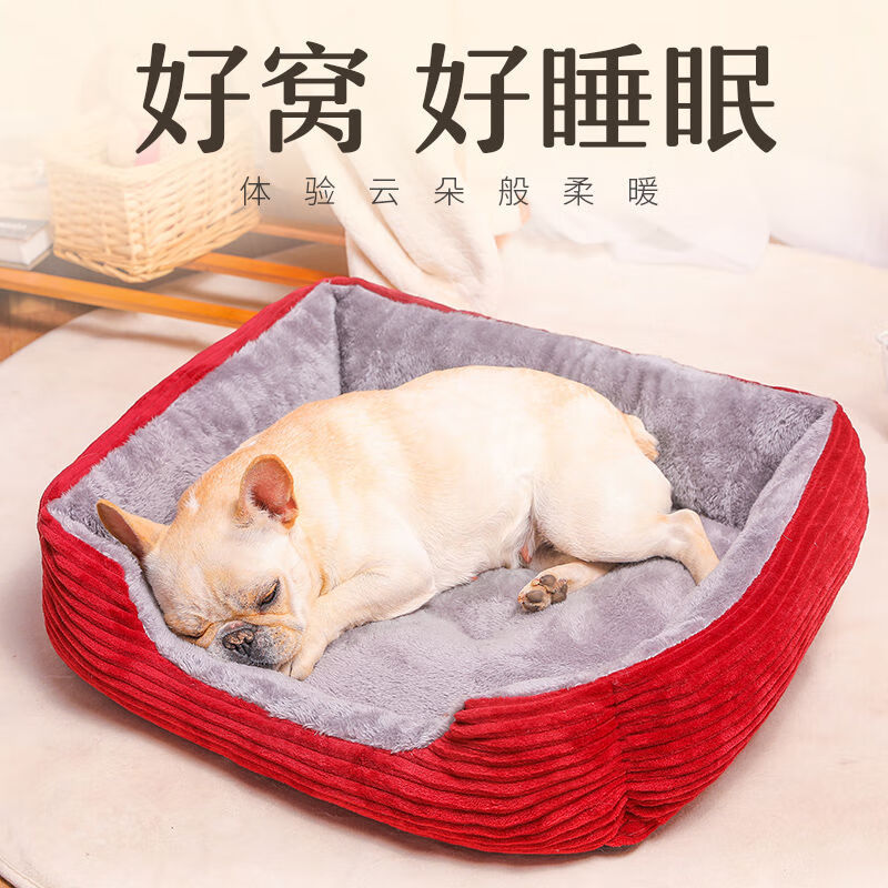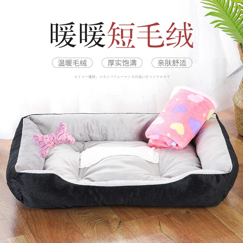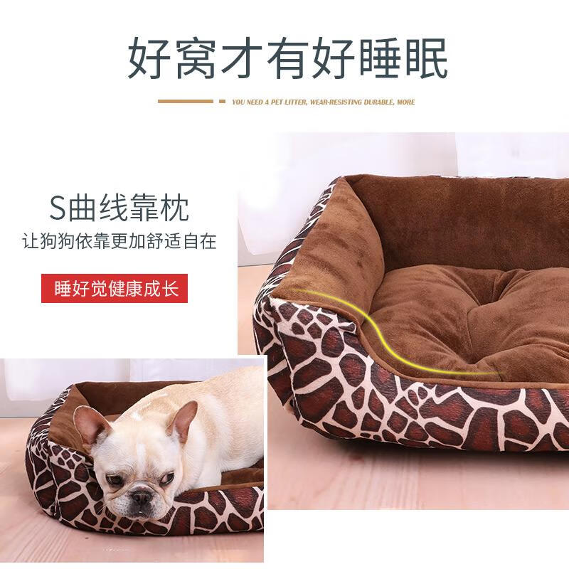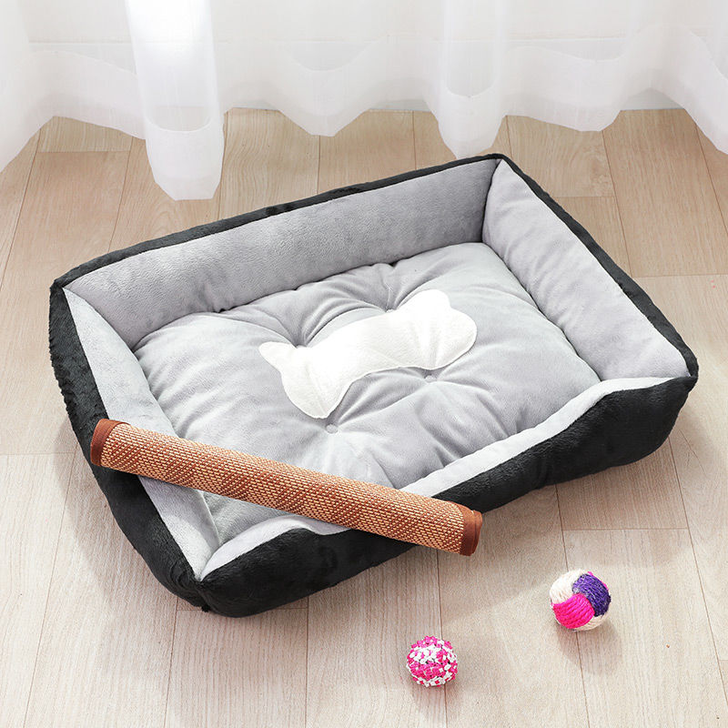狗窝冬季保暖泰迪小型犬狗床宠物窝大型犬毛狗垫子猫窝四季通用 黑色骨头 凉席 L:70*55CM(建议25斤内)