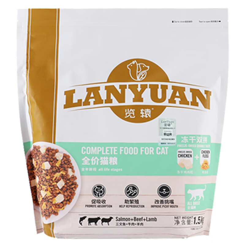 览辕览辕猫粮三文鱼鸡肉牛肉羊肉7.5KG览猿怀石双拼冻干肉松粮1.5KG 三文鱼 牛肉 羊肉 1.5kg