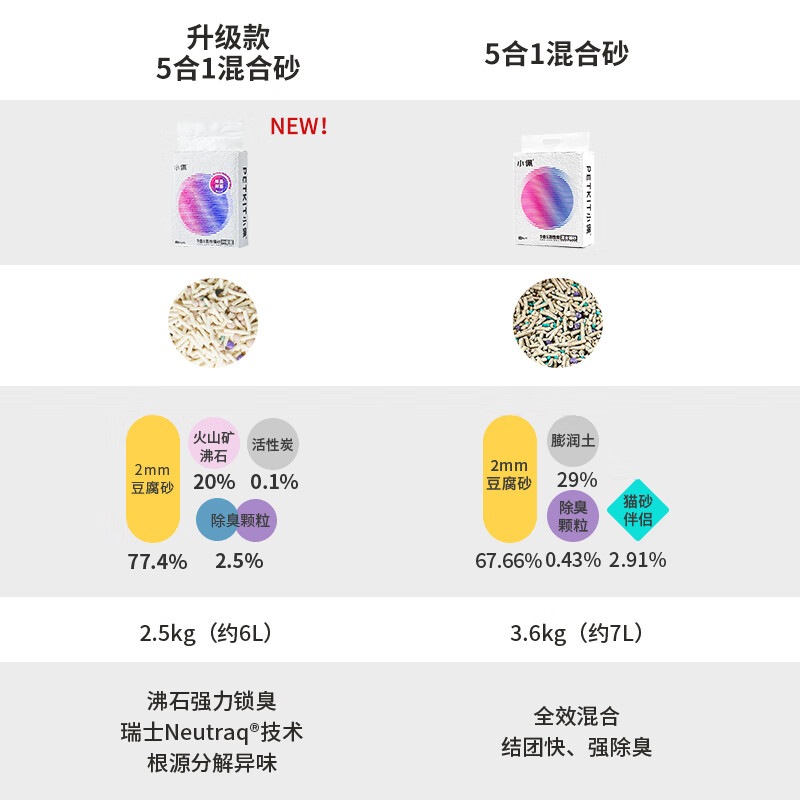 小佩猫砂五合一混合猫砂豆腐砂膨润土除臭低尘猫沙 [五合一升级款]1包装/2.5kg--