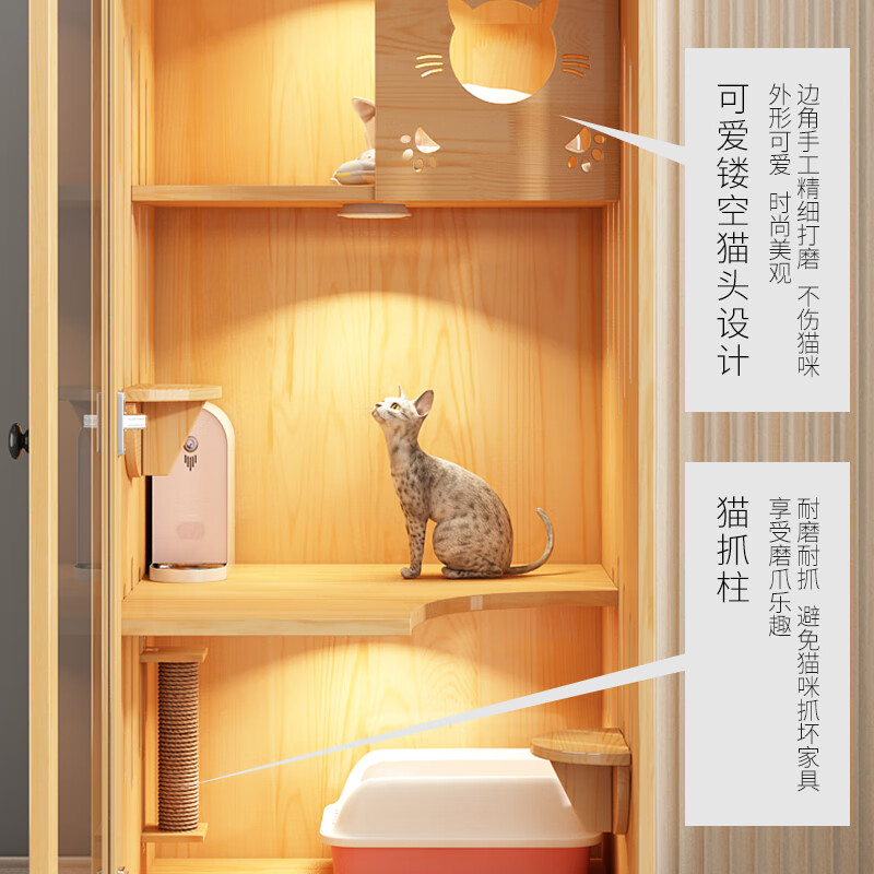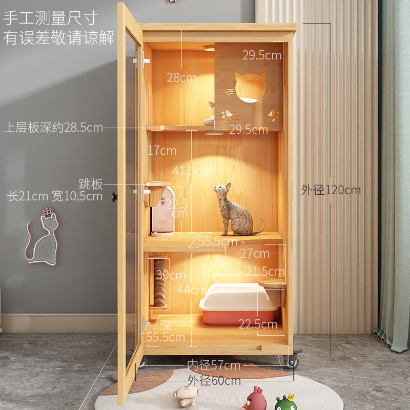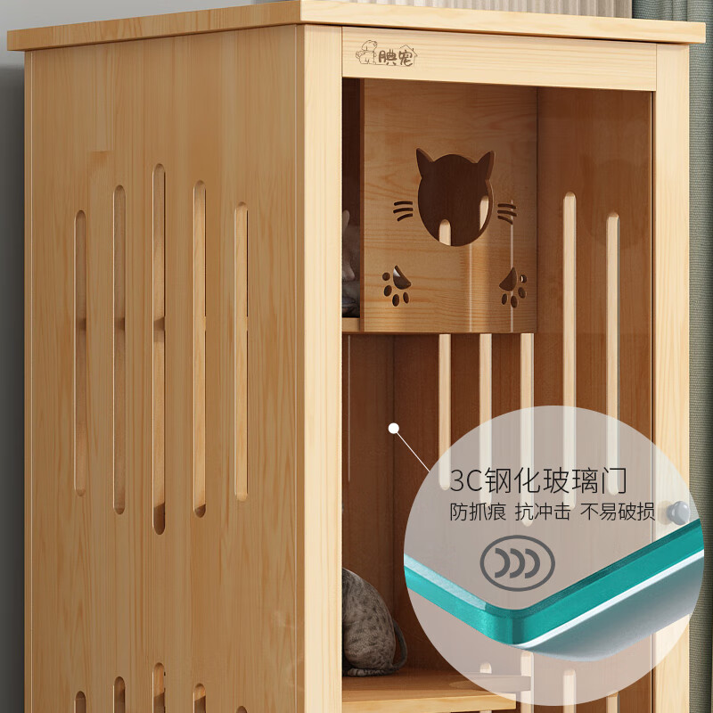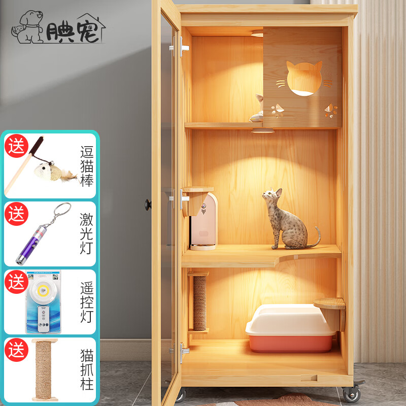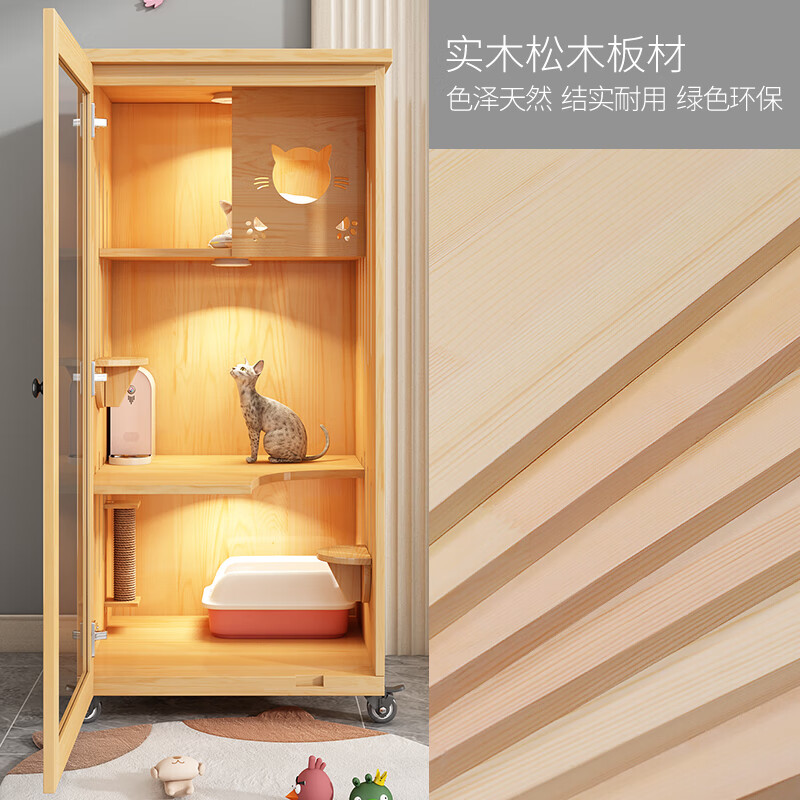 腆宠猫笼 猫别墅实木猫柜猫笼子大号家用宠物猫窝 高120*宽60*深60cm