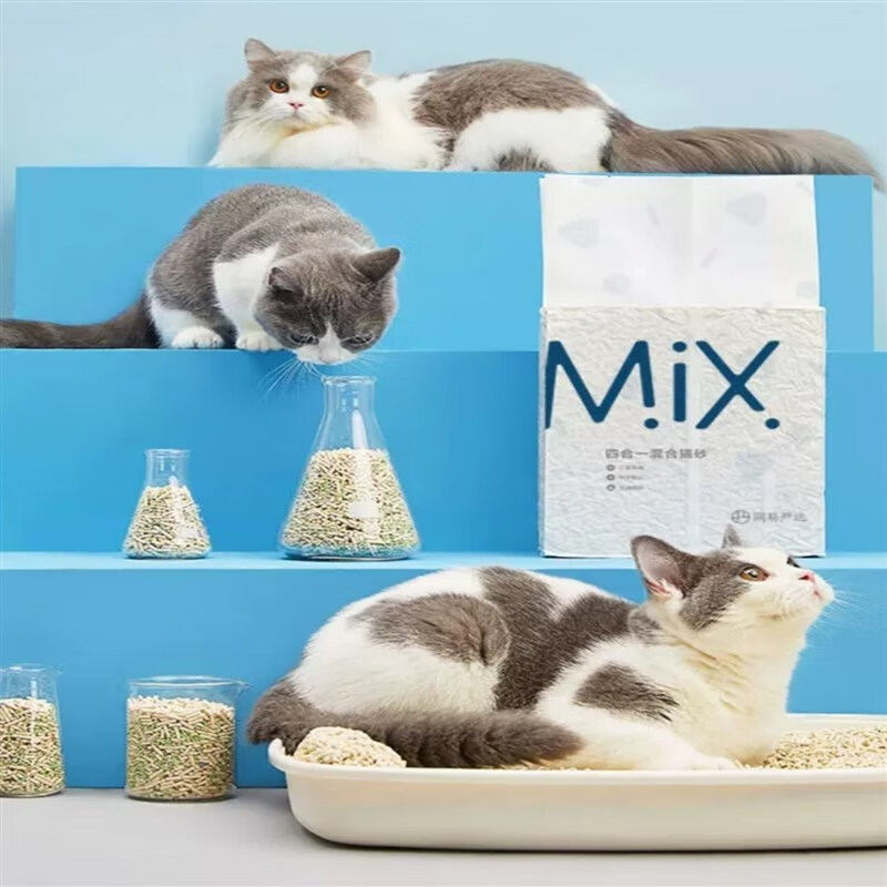 网易严选四合一混合猫砂除臭无粉尘结团豆腐猫砂膨润土砂猫粮猫沙 【MIX混合猫砂2.5kg】4袋