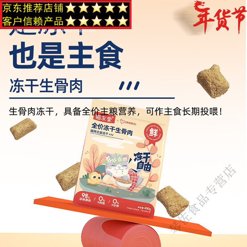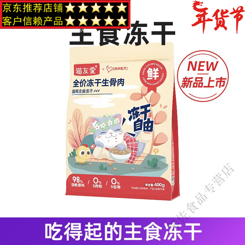 醇粹(Purich)主食冻干生骨肉全价主粮成猫幼猫奶糕营养增肥猫粮 鸡肉 鸭肉400g