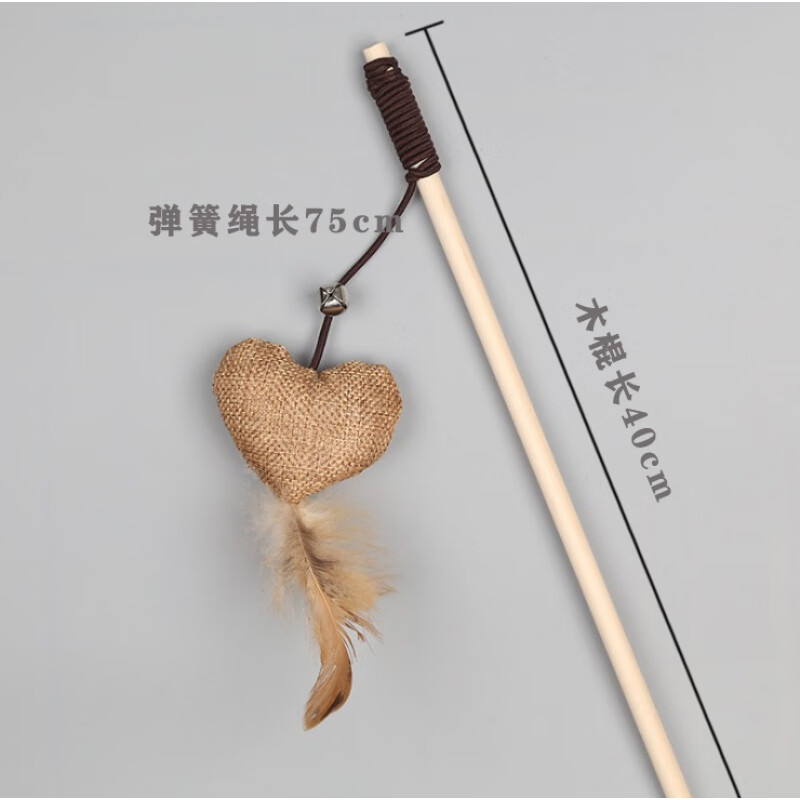 TUFF HOUND 猫咪玩具逗猫棒逗猫神器木质老鼠铃铛猫猫宠物用品小猫羽毛斗猫棒 麻布小桃心