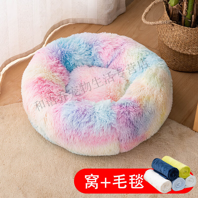 猫窝冬季踩奶保暖小猫深度睡眠猫咪床垫四季通用保暖狗窝宠物用品 彩虹 毛毯 L-60cm 大猫猫/胖猫猫适用