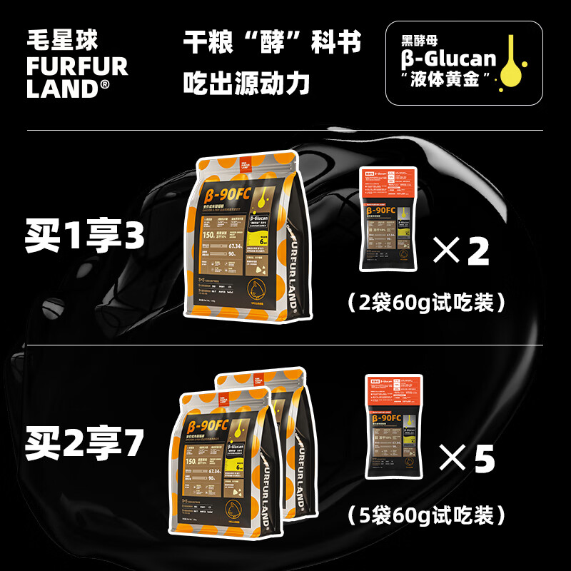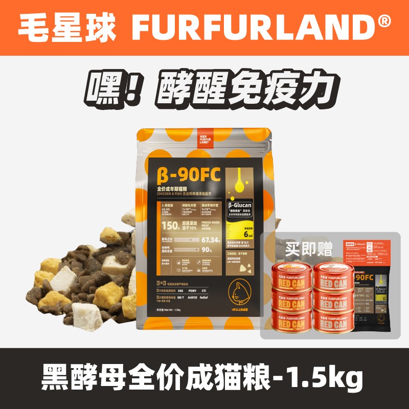 FurFurLand毛星球全价无谷鸡肉海洋鱼黑酵母干粮增肥发腮增强抵抗力冻干成猫粮 1.5Kg成猫粮 60G试吃 主食罐6罐